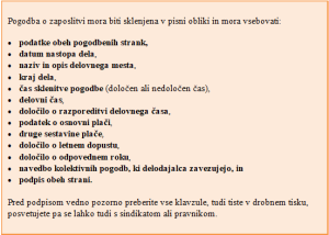 - Podjemna pogodba (pogodba o delu): Uporablja se za enkratna, oprijemljiva dela (npr. montaža pohištva, prevoz). Podjemnik delo opravi samostojno in neodvisno. Tudi ta pogodba ne zagotavlja pravic, kot so dopust, bolniški dopust ali odpravnina, a morata biti jasno določena vsebina in rok izvedbe dela.